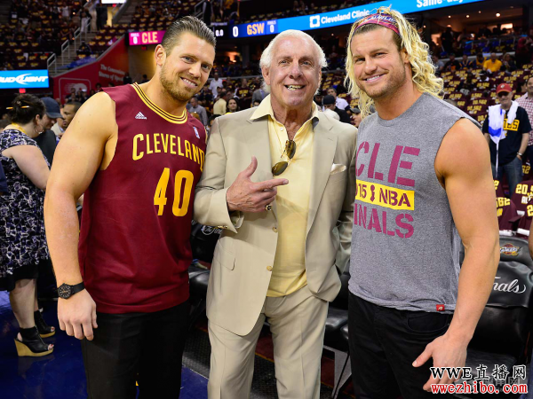 当晚,陪同“自然男孩”的还有这两位克利夫兰土生土长的WWE巨星——米兹(The Miz)和道夫·齐格勒(Dolph Ziggler)。