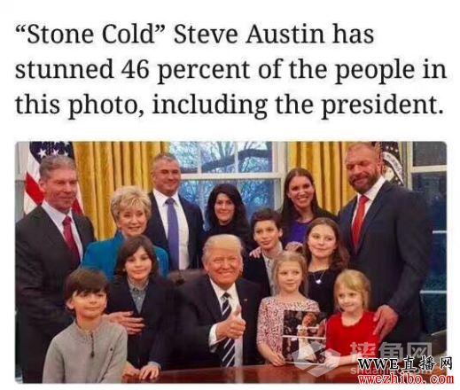 仔细一看特朗普让可爱的小女孩拿的是,她外公在《摔角狂热23》被特朗普剃光头的照片……这么调皮的总统也是没谁了!