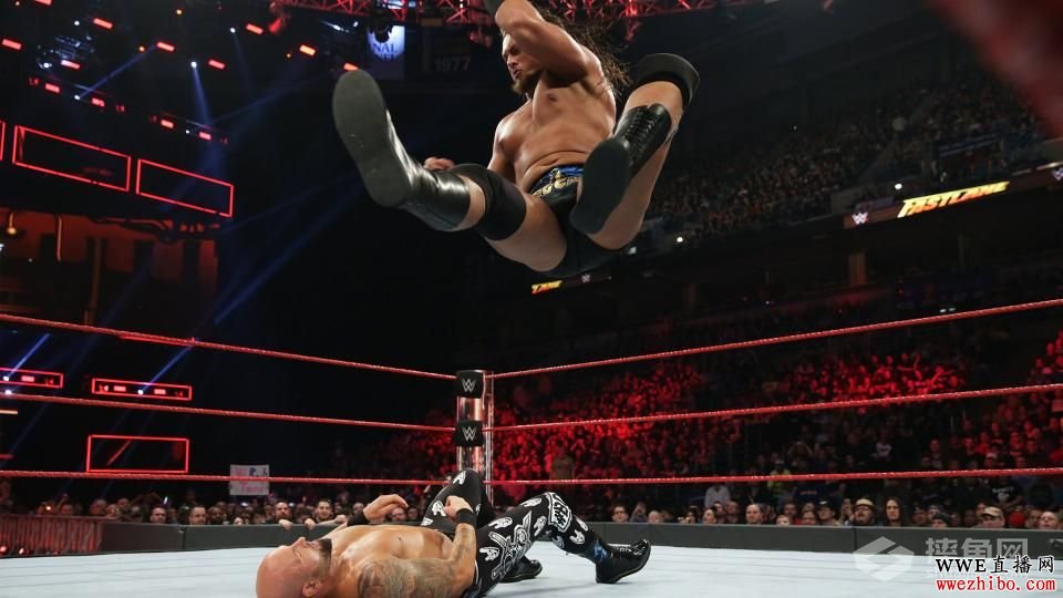 2.RAW双打冠军赛:卡尔·安德森(Karl Anderson)大凯斯(Big Cass) 上来之后,大凯斯凭着自己力量和身高的绝对优势对卡尔一阵拳打脚踢,加上和恩佐的一系列高空连招,应该说优势还是很大,换到恩佐刚打了没多久就被卡尔一个飞踢打破优势,一阵王八拳之后换到卢
