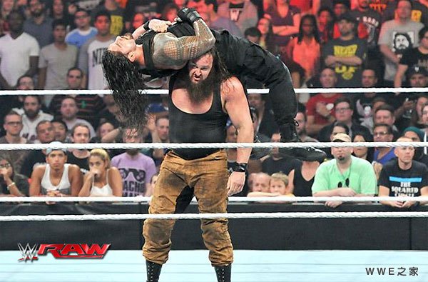 在昨日的RAW节目中,()和()组队与怀亚特家族(Wyatt Family)再次对战。就在雷恩斯二人占据上风快要获胜的时候,一名新的怀亚特新成员乱入终止了比赛,一挑二将这安布罗斯和雷恩斯给锁晕了。 据报道,这个扮演怀亚特家族中新成员角色的人是一位NXT选手,擂台名字是Braun Stowman。 原计划让他在《夏日狂潮》干扰雷恩斯、安布罗斯对战怀亚特家族的比赛,但WWE高层们并没有这样安排。取而代之的是让他在RAW节目上完成其首秀。 Braun Stowman的真名是Adam Scherr,现今31岁。这位身高2米03,体重385磅的怪物其实还大有来头。他曾经是一位“大力士”选手,在2012年3月4日他曾经勇夺阿诺德大力士(Arnold Strongman)业余组选手世界冠军。阿诺德大力士比赛是由WWE名人堂成员阿诺德·施瓦辛格(Arnold Schwarzenegger)创办的,由于2012年获得业余组别世界冠军,他还受邀参加了2013年专业组别的阿诺德大力士比赛。